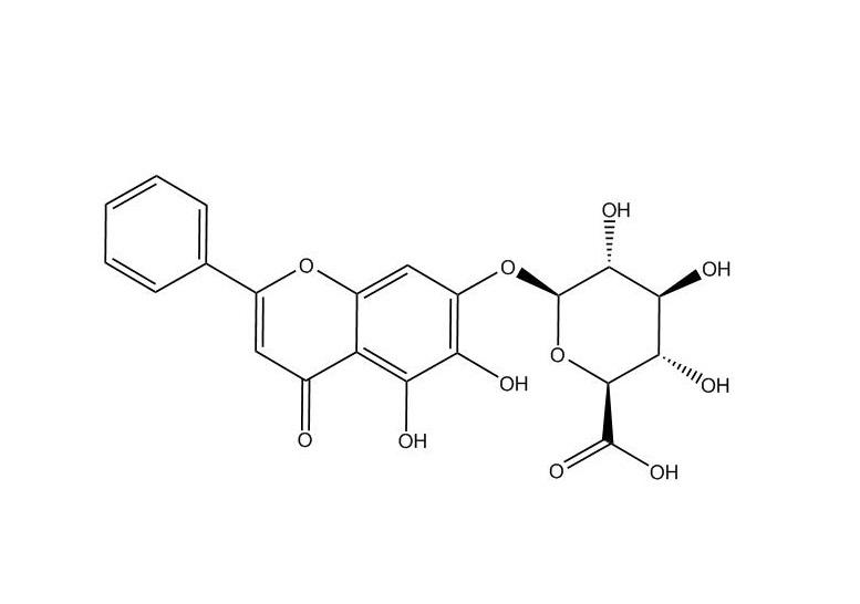 【IUPAC名稱】 (2S,3S,4S,5R,6S)-6-(5,6-二羥基-4-氧代-2-苯基色烯-7-基)氧基-3,4,5-三羥基-2-羧酸